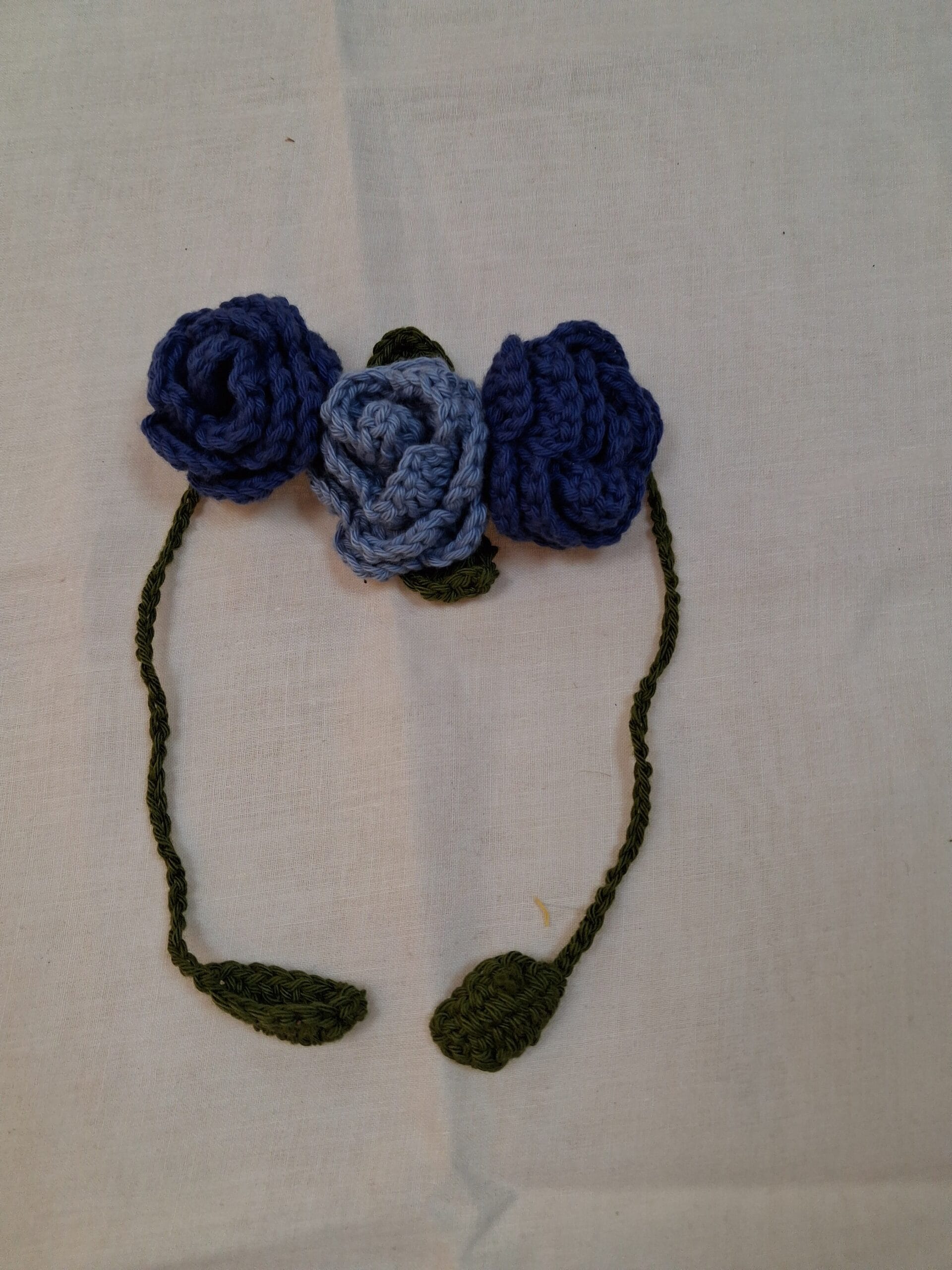 This crochet gajra accessory features a vibrant orange flower with a tiger-print band and matching bows for a unique look.